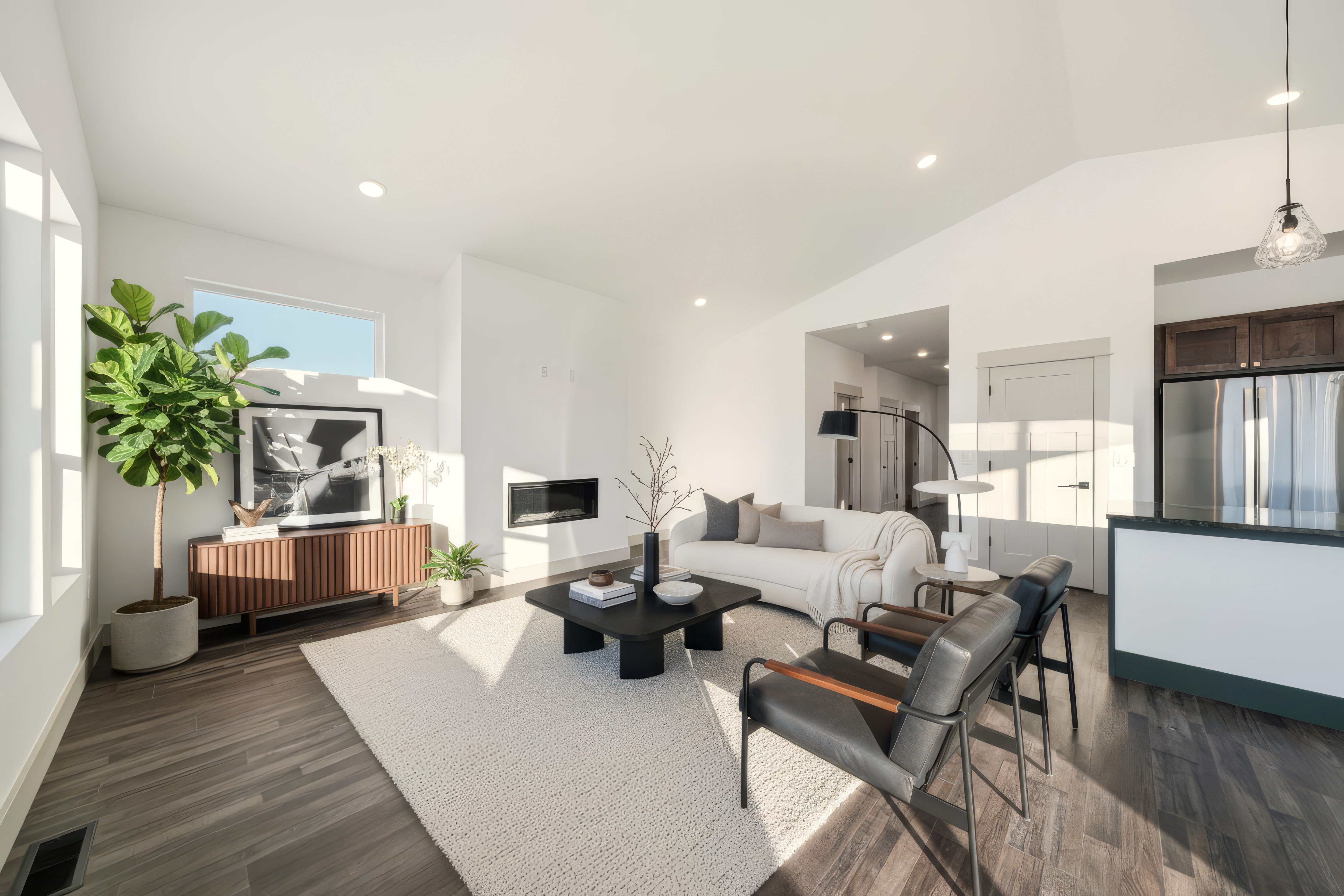 The open-concept floor plan features 3 bedrooms and 2.5 bathrooms, creating a functional and inviting space perfect for both relaxing and entertaining. The main living area showcases vaulted ceilings, a cozy gas fireplace, and large windows that fill the home with natural light.